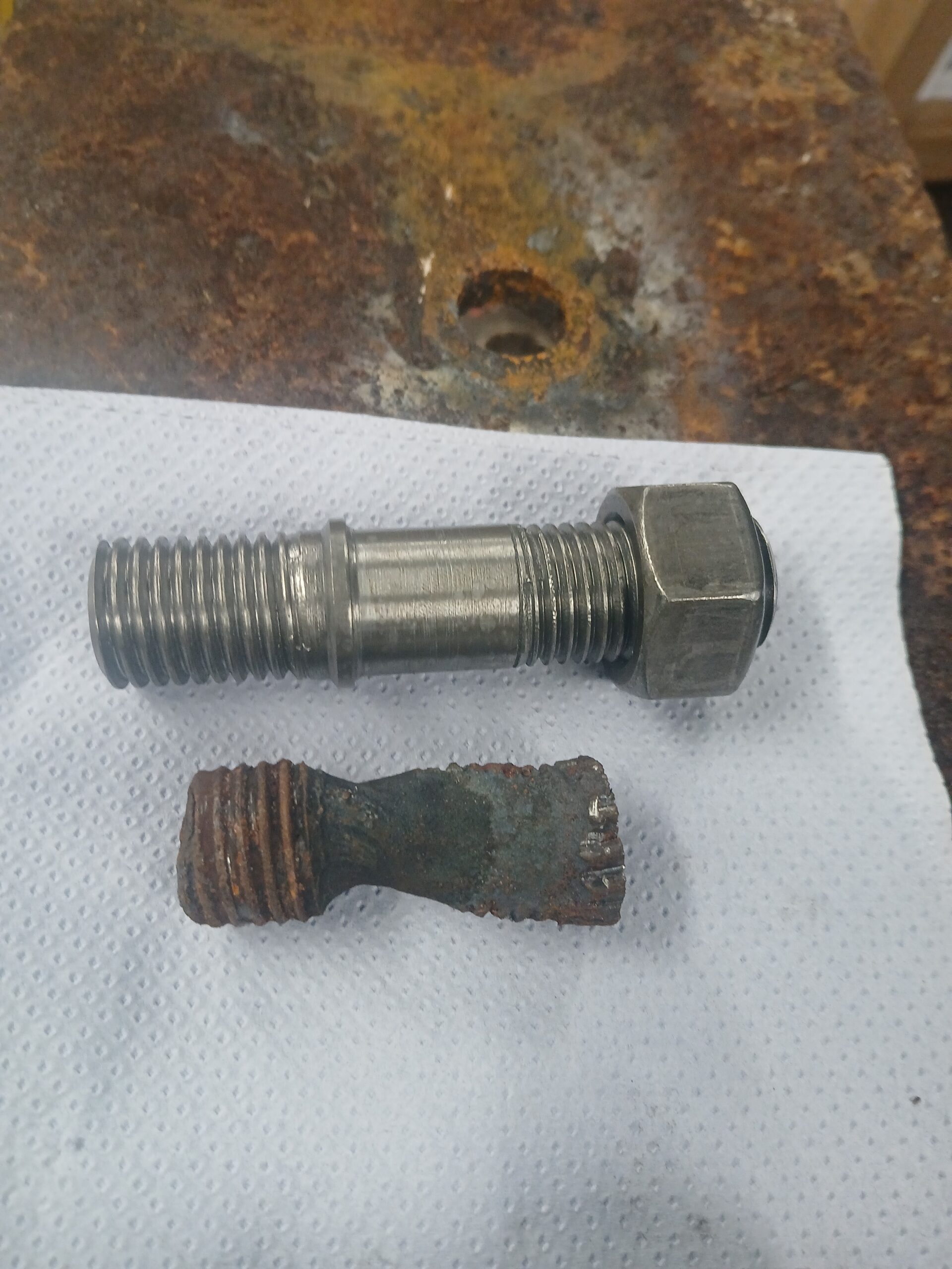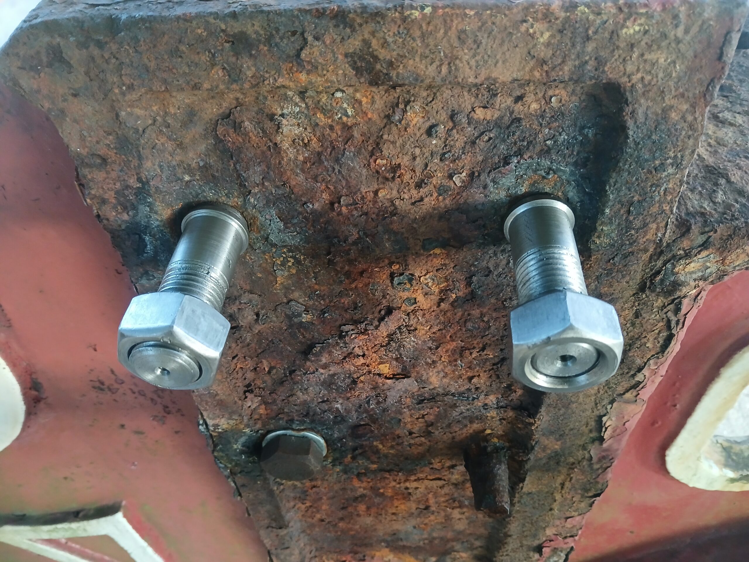 Extracting some of the bolts to enable a check on condition identified some pretty serious corrosion. Not unexpected really and after 125 years in position we think they’ve done well. Specialist bolts are being made for us and are due to arrive in around 4 weeks.