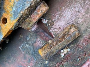 Extracting some of the bolts to enable a check on condition identified some pretty serious corrosion. Not unexpected really and after 125 years in position we think they’ve done well. Specialist bolts are being made for us and are due to arrive in around 4 weeks.