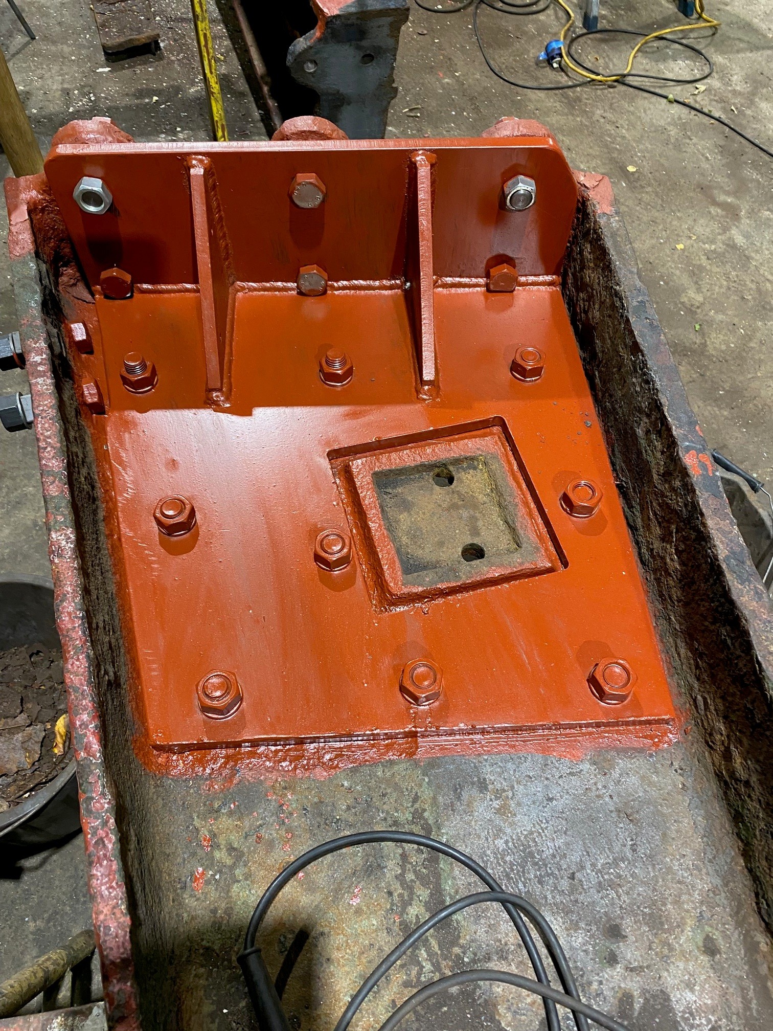 We are progressing in removing the corroded bolts and using a needle gun to clean up the bridge frame. In this process we have discovered some major flaws in the casting and cracks that have been there a long time. We are now making strengthening plates to bolt onto the frame to reinstate its integrity. This has added cost and a considerable amount of time to the project. The hope of starting to get the bridge in place this autumn sees a little more fanciful than it did a month ago, but getting it right to stand another 125 years is the goal.