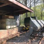 The Goods Shed with its decorative canopy overhanging the siding, is on the righthand side as you approach Stony Shaw.