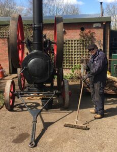 In 2023 the boiler inspector restricted the maximum pressure as it was suspected that the tubes and crown were not capable of handling its standard pressure and detailed inspection was not possible at that time. After running every event day in 2024 it was withdrawn from service and stripped for a full detailed inspection. The tubes were found to require replacement but the rest of the boiler is in good condition. During the winter of 2024/5 work on re-tubing is taking place. The tubes are now expanded into the front plate however, the fire box is small and expanding the tubes into the rear tube plate requires strength and an ability to work in a very limited space!