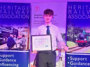 Then, just a few days later, we joined him in Llandudno for the Heritage Railway Association Awards where he was Highly Commended in the Lord Faulkner Young Volunteer of the Year category.