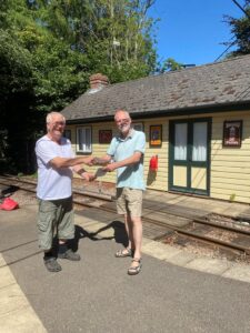 Chris from SVEC presented Bill with a generous donation from the collections of SVEC members. Presented in July 2025 on a hot sunny day, hence the casual attire!